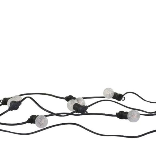 Lyskæden er skabt til at blive brugt – både inde og ude. Den er IP44-godkendt, hvilket gør den perfekt til at skabe hygge på terrassen, i pavillonen eller langs havehegnet. Indendørs fungerer den fantastisk som stemningsbelysning over spisebordet eller i et mørkt hjørne, der trænger til lidt ekstra magi. En stilfuld kombination af det rå, sorte kabel og de fine, detaljerede glaspærer.