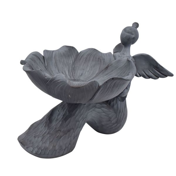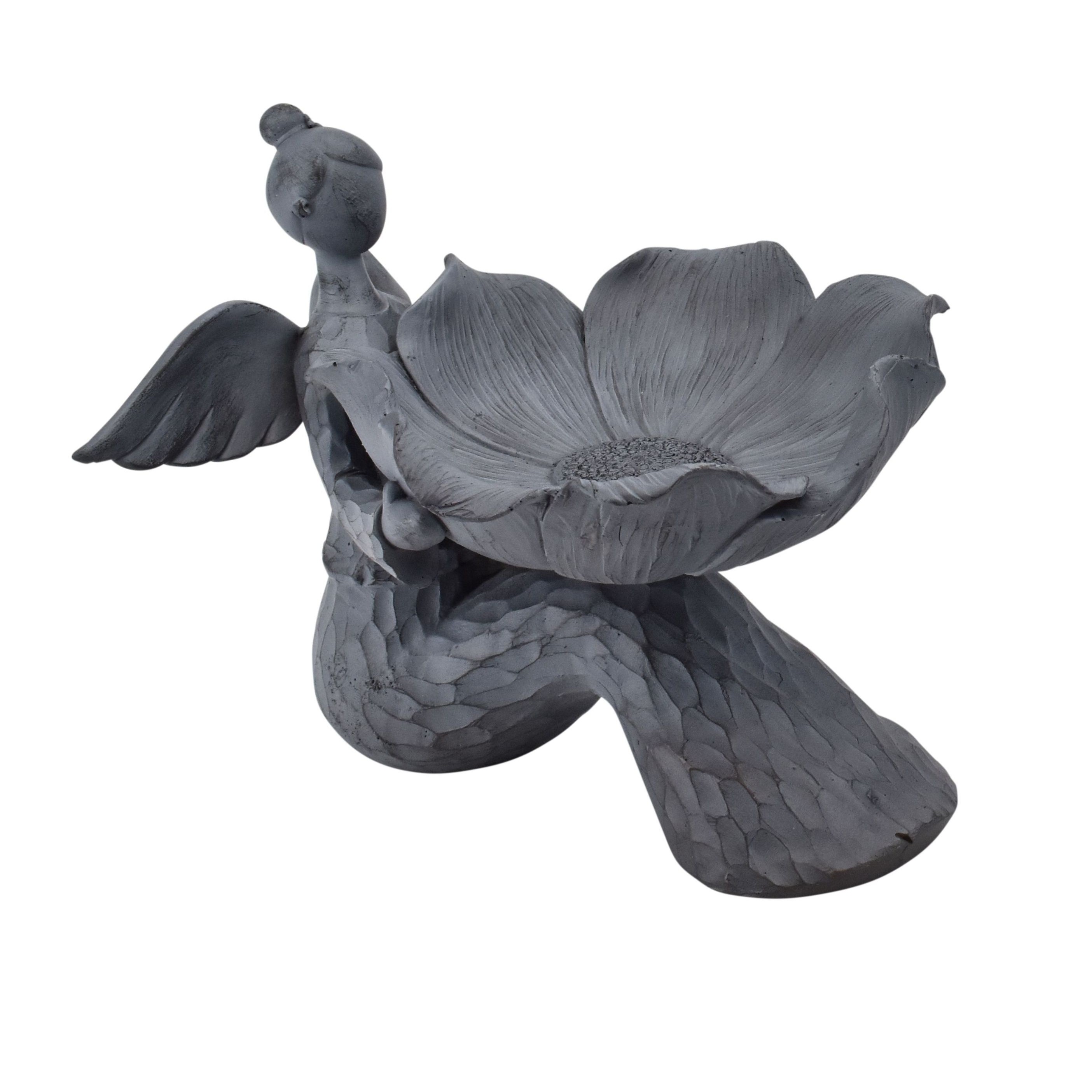 Engel med blomsterskål fuglebad – Antik grå