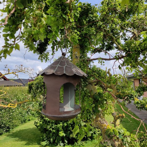 Skab liv og stemning i haven med dette charmerende fuglehus fra La Vida, der med sit antikke look og fine detaljer fungerer som en smuk dekoration i uderummet. Fuglehuset er udformet, så det også kan bruges som et fuglebræt, hvor du kan lægge foder ud til havens små fugle. Det er udført i holdbart jern med en flot antik brun finish og leveres med en praktisk kæde og krog, så det er lige til at hænge op i et træ, på terrassen eller ved udhuset. En ideel måde at invitere naturen tættere på og tilføje et strejf af nostalgisk fransk landstil til din haveindretning.