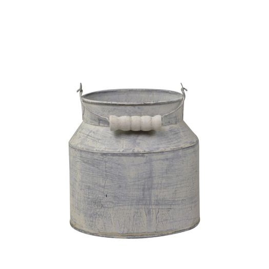 Tilfør dit hjem en charmerende landstil med denne smukke mælkekande i zink. Kanden har et autentisk, patineret look med hvidmalede detaljer, der giver den et slidt og antikt udtryk. Den er udstyret med et lille metalhåndtag med et flot, udskåret hvidt greb, hvilket fuldender det rustikke design.