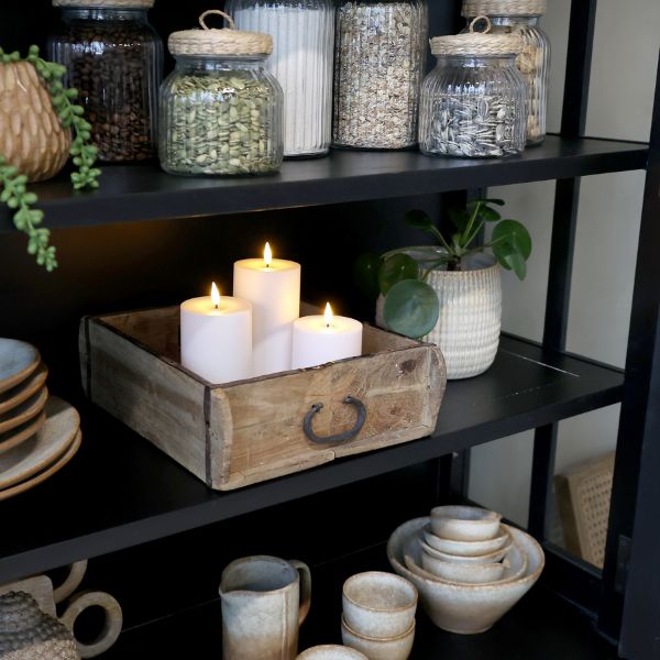 Du kan også bruge den som en rå planteholder, til opbevaring af bloklys eller som et unikt element på en hylde i stuen. Selv på badeværelset er den god til at skabe en hyggelig spa-stemning ved at organisere dine cremer og parfumer. De rustikke metalbeslag og den rå træoverflade giver kant til både det moderne og det klassiske hjem.