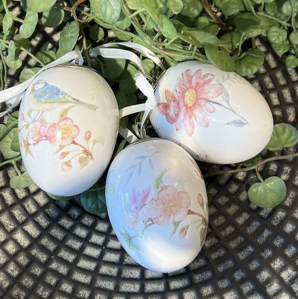 Påskeæg i porcelæn til ophæng - vælg imellem tre forskellige motiver